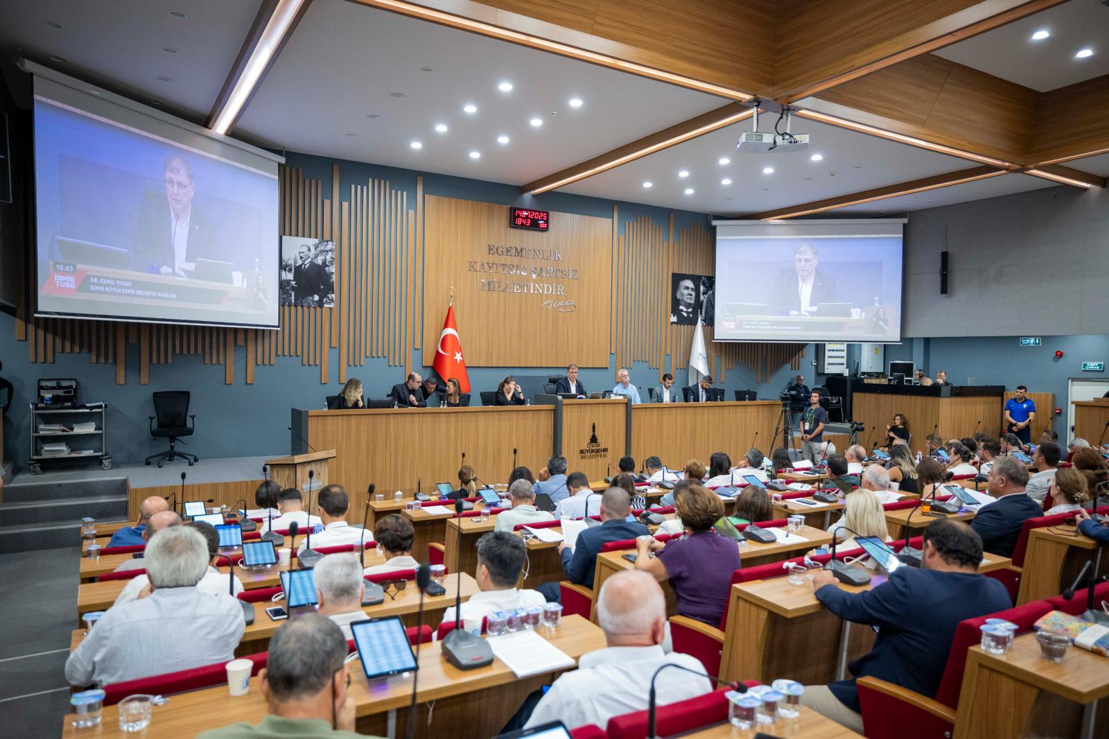 Temmuz ayı meclis toplantısında konuşan İzmir Büyükşehir Belediye Başkanı Dr. Cemil Tugay, geçtiğimiz haftalarda İzmir’in çeşitli bölgelerini saran orman yangınlarının yaralarının tüm kurumlarla iş birliği içinde sarılacağını söyledi. Tugay, “Bir dayanışma çağrısında bulunmak istiyorum. Bu yaraların sarılmasında, kaybedilen evlerin yeniden yapılmasında, aynı zamanda kaybedilen alanların yeniden ağaçlandırılmasında İzmir olarak dayanışma içinde olmalıyız. Buna şehrimizin ve insanlarımızın ihtiyacı var” dedi.EGEMENLİK - İzmir Büyükşehir Belediyesi temmuz ayı olağan meclis toplantısının birinci oturumu, İzmir Büyükşehir Belediye Başkanı Dr. Cemil Tugay yönetiminde gerçekleştirildi. “Yangının çıkmaması ve hızla söndürülmesi için üzerimize düşeni yapmak zorundayız”Mecliste gündemi değerlendiren Başkan Tugay geçtiğimiz haftalarda İzmir’in çeşitli bölgelerini saran orman yangınları hakkında konuştu. Sözlerine yangınlarda yaşamını yitiren 2 yangın görevlisi ve 1 vatandaşı anarak başlayan Başkan Tugay, “Yaşadığımız felaket, İzmir tarihinin yaşadığı en büyük felaketlerinden biriydi. Elbette çok üzüntülüyüz. Bu felaketi yaşayan herkese büyük geçmiş olsun diliyorum. Ancak hem vatandaşlarımıza, hem bizim gibi kamu kurumlarına önemli görevler düştüğünü hatırlatmak zorundayız. Tüm vatandaşlarımızın yangınların çıkmamasıyla ilgili azami dikkati göstermesi gerekiyor. Yaşadığımız dönem, iklim krizinin doğrudan hayatımıza etki ettiği bir dönem. Sıcaklık, kuraklık rekorları kırılıyor. Sıcak, kuru hava ve rüzgarların etkisiyle en ufak bir kıvılcım durdurulamaz yangınlara dönüşüyor. Bilmeliyiz ki şehrimiz bundan sonraki yıllarda ve aylarda da yangın tehdidinde olmaya devam edecek. Hepimiz yerleşim yerlerimizi bu yangına dirençli hale getirmek için çalışmak zorundayız. Hem çıkmaması için hem de çıktıktan sonra en kısa sürede söndürülmesiyle ilgili üzerimize düşenleri yapmak zorundayız” diye konuştu. “İzmir olarak dayanışma içinde olmalıyız”İzmir’e dayanışma çağrısı yapan Başkan Tugay, “Menderes ve Seferihisar bölgesi, özellikle Ödemiş bölgesindeki köylerimizdeki ormanlık alanlar ağır hasar aldı. Geçen hafta Çevre Şehircilik ve İklim Değişikliği Bakanı’mızın ziyaretinde ben de eşlik ettim. Hepimiz, bakanlığımızla, ilçe belediyelerimizle ve İzmir Büyükşehir Belediyesi’nin tüm birimleriyle halkımızın yaralarını sarmak için çalışacağız. Bir dayanışma çağrısında bulunmak istiyorum. Bu yaraların sarılmasında, kaybedilen evlerin yeniden yapılmasında, aynı zamanda kaybedilen ağaçlık alanların yeniden ağaçlandırılmasında İzmir olarak dayanışma içinde olmalıyız. Buna şehrimizin ve insanlarımızın ihtiyacı var” dedi. “İzmir’in doğası için yeni kararlar alacağız” İzmir’de karbon salımının önlenmesi, doğal kaynakların verimli kullanılması ve çevreyi koruyacak önlemler alınmasıyla ilgili kararlar alınacağını söyleyen Başkan Tugay, “İklim kaynaklı sorunlarla ilgili şehrimizin 2030 yılına kadar karbon nötr taahhüdü var. Bunun gereğini yerine getirmek zorundayız. İklim kriziyle ilgili doğaya verdiğimiz hasarı durdurmak zorundayız. Bu çerçevede önümüzdeki günlerde daha farklı çağrılarımız olacak. Karbon emisyonumuzu düşürmek, enerjiyi daha verimli kullanmak, ulaşımda düşük emisyonlu ulaşım yöntemlerini tercih etmek durumundayız. Bununla ilgili İzmir Büyükşehir Belediyesi olarak biz de bazı kararlar alacağız. Sizlerin ve kamuoyunun desteğini şimdiden beklediğimizi söylemek isterim. Önümüzdeki yıllarda su krizini daha ağır yaşayacağımız çok açık. İzmir’in yeraltı ve yerüstü kaynaklarının tamamını kullanıyor durumdayız. Çok ufak tefek kaynaklar hariç hepsini kullanıyoruz. Ne olursa olsun her birimiz su israfıyla ilgili azami dikkati göstermek zorundayız. En son aldığımız kararda park ve bahçelerde kullandığımız suları belli alanlar dışında kestik. Kamu olarak üzerimize düşeni yapıyoruz. Vatandaşlarımızın hassasiyetini bekliyoruz” ifadelerini kullandı.