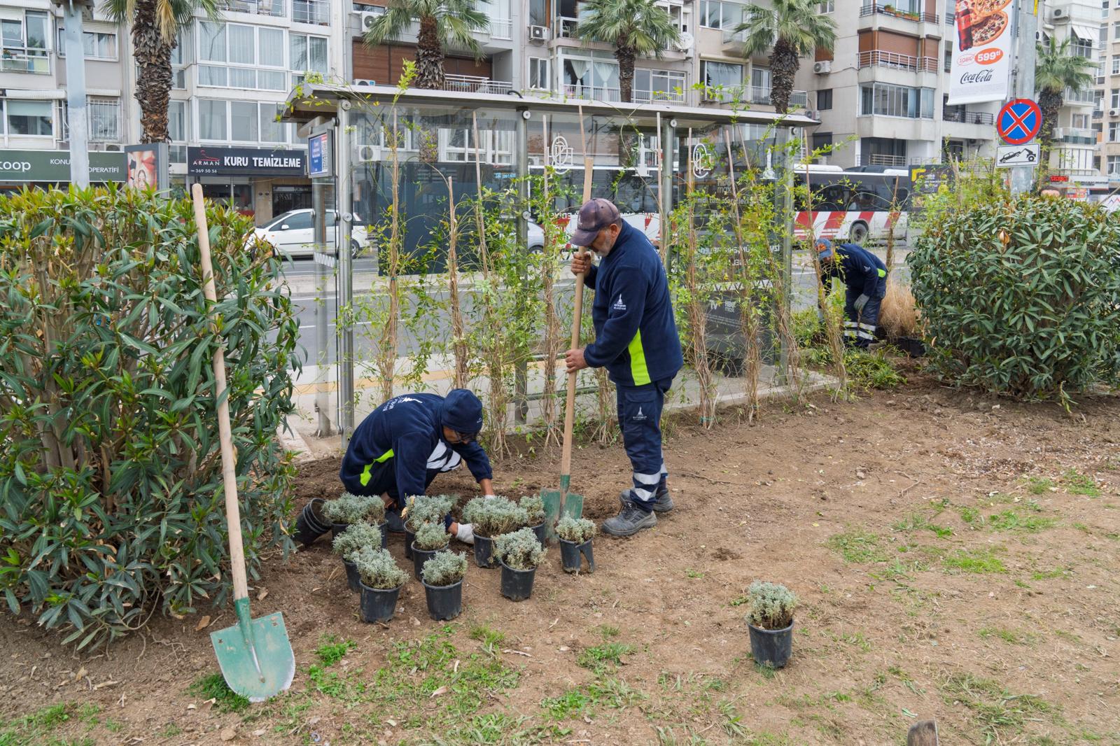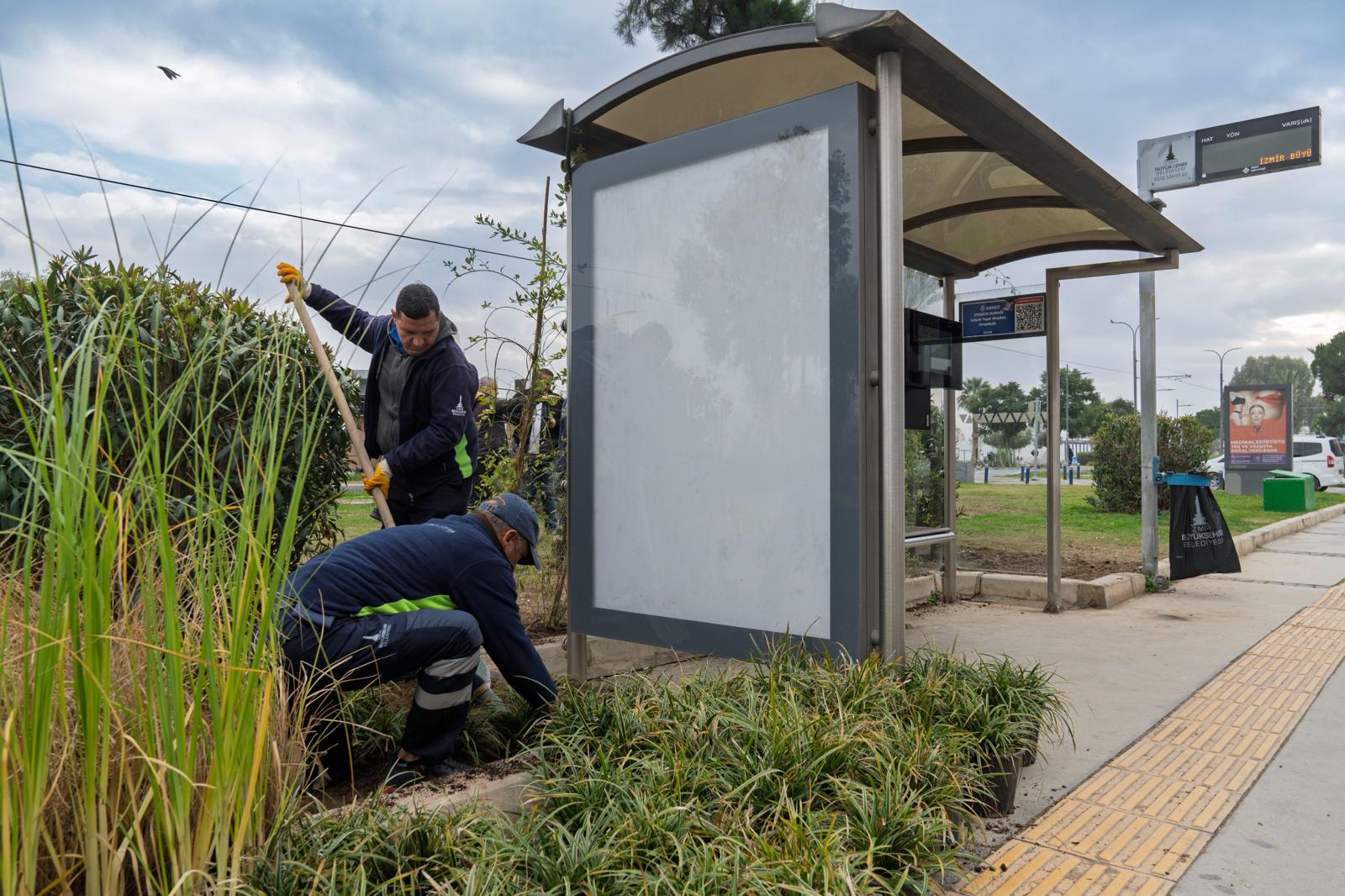 “Kuraklığa dayanıklı bitkiler tercih ediyoruz”Çalışmalar hakkında bilgi veren Park ve Bahçeler Dairesi Başkanlığı Güney Alanlar Bakım Şube Müdürlüğü’nde görevli Peyzaj Mimarı Koray Aydın, “Bu projeye başkanımızın talimatıyla başladık. Amacımız, durak yüzeylerinin çevresini ve çatılarını yeşillendirerek iklimsel, estetik ve görsel açıdan nitelikli bir uygulamayı hayata geçirmek. Projeyle İzmir’in estetik görünümüne katkı sağlıyoruz. Başkanımızın bu konuda özel bir hassasiyeti bulunuyor. Kullandığımız bitkilerde, diğer alanlarda olduğu gibi kuraklığa dayanıklı türleri tercih ediyoruz. Pennisetum, lavanta, lavantin ve biberiye gibi bitkiler kullanıyoruz. Durak arkalarında ise sarıcı bitkilere yer veriyoruz” dedi.“İzmir’e çok yakışan bir proje oldu”Koray Aydın, “İzmir genelinde 21 durağımız bulunuyor. Bu duraklardan 7’sinde çalışmalar tamamlandı, aktif olarak 3 durakta ise çalışmalar sürüyor. Projeyi 2026 yılı başında tamamlamayı hedefliyoruz. Park ve Bahçeler Dairesi Başkanlığı olarak İzmir’in yeşil varlığını korumak ve genişletmek amacıyla çalışmalarımıza aralıksız devam ediyoruz. Yeşil Durak projesi, İzmir’e çok yakışan bir çalışma oldu” ifadelerini kullandı.