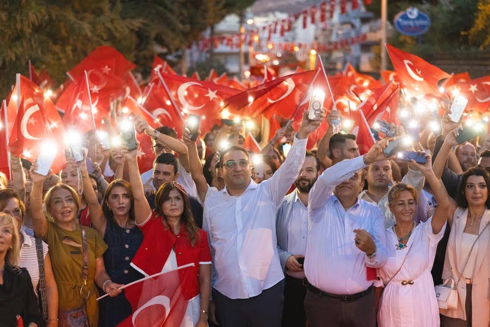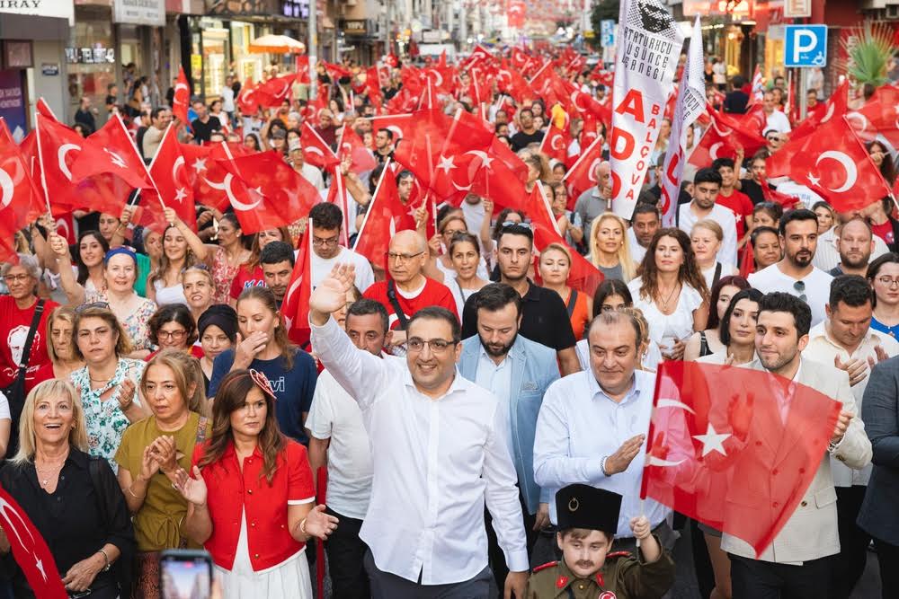 “Biraz önce hep birlikte sokaklardaydık. Çok büyük bir coşkuyla çocuklarımızla, gençlerimizle, büyüklerimizle kol kola yürüdük. Balçova tek yürek oldu! Balçova dimdik ayakta olduğunu, birlik ve beraberliğini bütün Türkiye’ye gösterdi. Heyecanımız büyük, ama sadece heyecanımız yok; gençliğimiz var, geleceğe dair inancımız var, umudumuz var. Evet, burada umut var. Umut var! Dünyanın dört bir yanındaki halkların danslarında kendi mücadeleleri, sevinçleri ve özgürlük hikâyeleri vardır. Dans, insanlığın ortak dilidir; bizi birbirimize bağlayan en köklü kültürel miraslardandır. Ve bizim halk danslarımız da, tıpkı zafer mücadelemiz gibi, bir direnişin ve bir hikâyenin ürünüdür. İşte biz, kültürünü de, tarihini de, bağımsızlık mücadelesini de sahiplenen bir halkız. Ve bu yüzden, Ulu Önderimiz Mustafa Kemal Atatürk’ün yolunda yürüyen bir halkız. Cumhuriyetine sahip çıkan bir halkız. Ve bundan asla vazgeçmeyeceğiz! Ölmek pahasına vazgeçmeyeceğiz! Kendim adına sizlerin huzurunda namus ve şeref sözü veriyorum.”