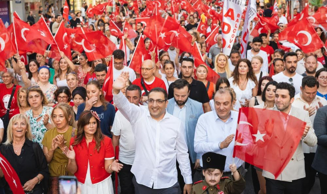 EGEMENLİK - Balçova’da 30 Ağustos Zafer Bayramı büyük bir coşkuyla kutlandı. Özellikle vatandaşların büyük ilgi gösterdiği Zafer Yürüyüşü’nde coşku adeta doruğa ulaştı. Türk Bayraklarıyla yürüyüşe katılan Balçovalılar, slogan atıp marşlar söylediler. Ata Caddesi üzerindeki Duru Park önünden başlayıp Ekonomi Üniversitesi’nde sona eren yürüyüşe evlerinde olan vatandaşlar da balkonlarından alkışlarla destek verdi. Yürüyüşe Uluslararası Halk Dansları Festivali’ne katılmak üzere 7 ülkeden gelen dans toplulukları da katıldı.