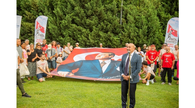 Uğurlamada Başkan Tunç Soyer’e Türkiye Muharip Gaziler Derneği üyeleri, Türkiye Harp Malulü Gaziler Şehit Dul ve Yetimleri Derneği temsilcileri, İzmir Büyükşehir Belediyesi bürokratları, İzmir Büyükşehir Belediyesi Genç İzmir gönüllü takımı, kafiledeki sporcular ve çok sayıda İzmirli eşlik etti. Törende Başkan Tunç Soyer, “100 yıl önce atalarımız bu cennet vatanı bize emanet etmek için olağanüstü bir zafer kazandı. O zafer yolculuğu 100 yıl önce başladı. Kanları, canları pahasına kazandıkları o zaferle yeni bir devlet kuruldu, Cumhuriyet kuruldu. Ülkemiz demokrasinin, tam bağımsızlığın, özgürlüğün ve barışın memleketi oldu. Atalarımızla iftihar ediyoruz. Bugün gelecek nesillere yine bu eşsiz vatanı emanet etmenin heyecanını yaşıyoruz. Bu muazzam zaferin ilk adımlarını atmak için bugün İzmir’den yola çıkıyorsunuz. Yolunuz açık olsun, ayağınıza taş değmesin” dedi.
