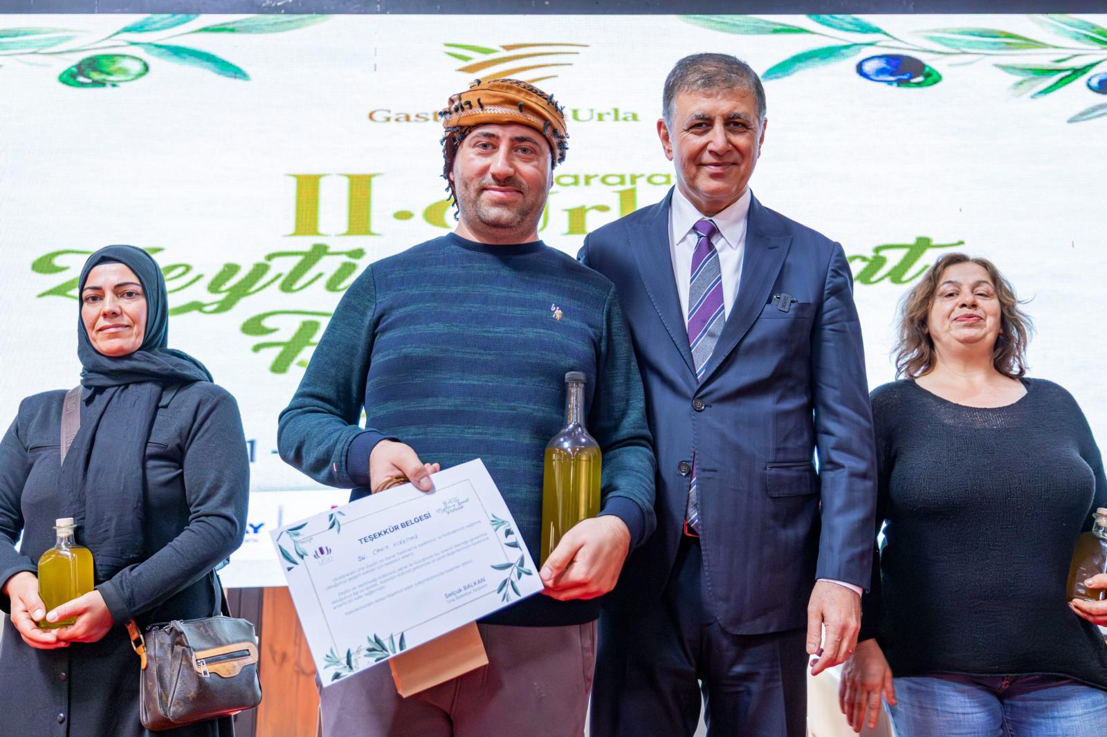 Kılınç: Zeytin barıştırUrla Ziraat Odası Başkanı Nurettin Kılınç, “Burada emeği hep birlikte kutluyoruz. Zeytin barıştır, bilgeliğin sembolüdür, ölümsüzlüktür. Her tanesinde alın teri vardır. Biz üreticimizin yanında olmaya, zeytinyağımıza değer katacak her çalışmanın içinde olmaya devam edeceğiz. Bu festivalin üreticimize moral, tüketiciye bilinç getirmesini diliyorum” dedi. Yarışmalar yapıldıEn iyi zeytinyağı şişesi yarışması da yapıldı. Yarışmada birinci Deniz Alper Gürel, ikinci Alanur Türkoğlu, üçüncü Feyza Sinem Taş oldu. Zeytin Yarışması’nda ise Cavit Korkmaz birinci, Naime Polat ikinci, Ayşe Elma ise üçüncü oldu. 23 Kasım'a kadar devam edecekUluslararası Zeytin ve Sanat Festivali; 23 Kasım Pazar gününe kadar devam edecek. Zeytin temalı sergiler, uluslararası sanatçı performansları, zeytin ve zeytinyağı tadımları, söyleşiler, çocuk atölyeleri, yerel üretici stantları, konserler ve gösteriler ile her yaştan ziyaretçiye unutulmaz bir deneyim sunacak.