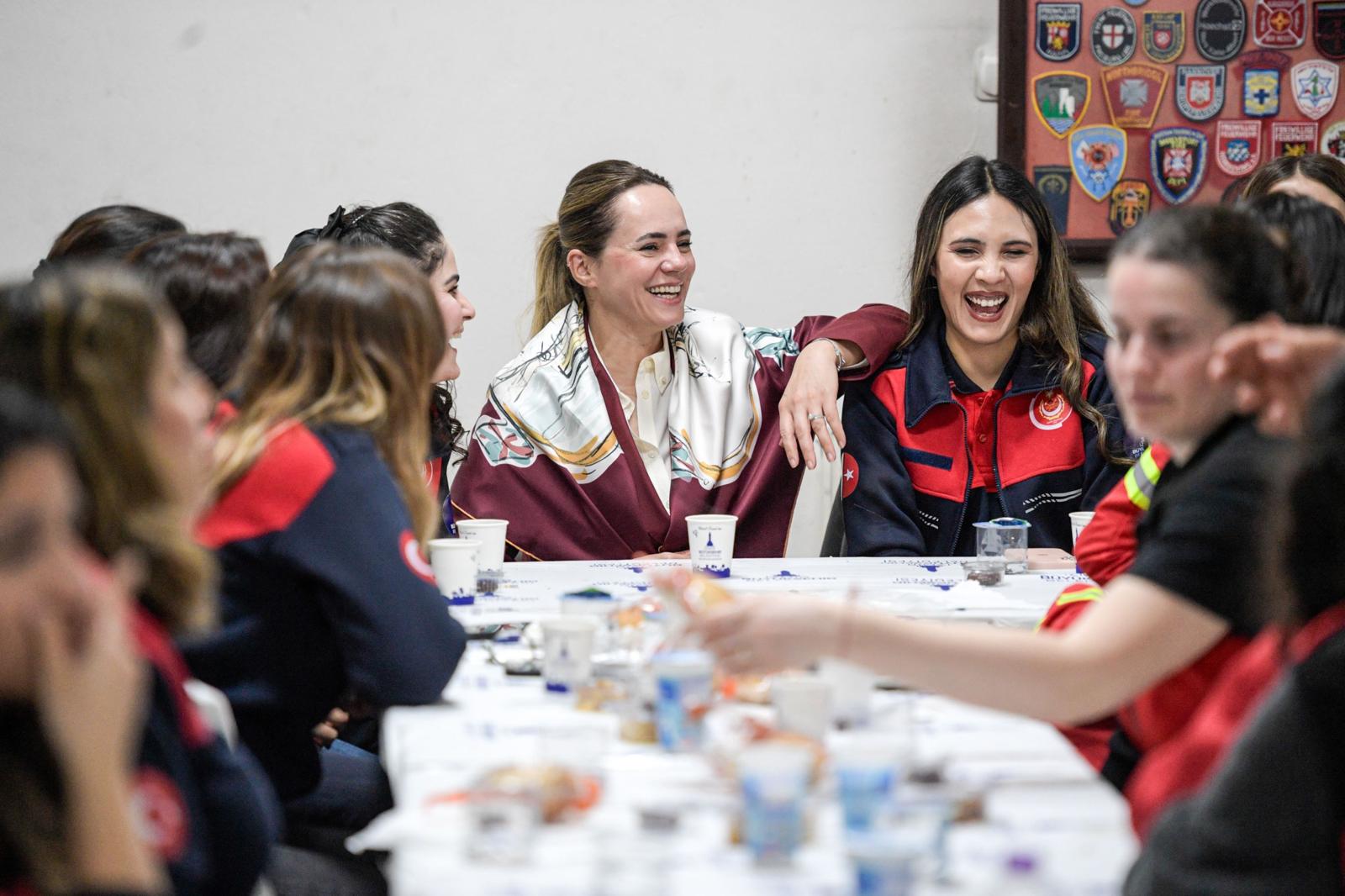 İzmir Büyükşehir Belediye Başkanı Dr. Cemil Tugay’ın eşi Öznur Tugay, ramazan ayında İzmir İtfaiyesi ve ESHOT’ta görev yapan kadın personelle buluştu. Ramazan ayının dayanışma ve paylaşma ruhuna vurgu yapan Tugay, itfaiye ve toplu ulaşım gibi sorumluluğu yüksek alanlarda görev yapan kadın çalışanların kentin günlük yaşamına önemli katkı sunduğunu ifade etti.